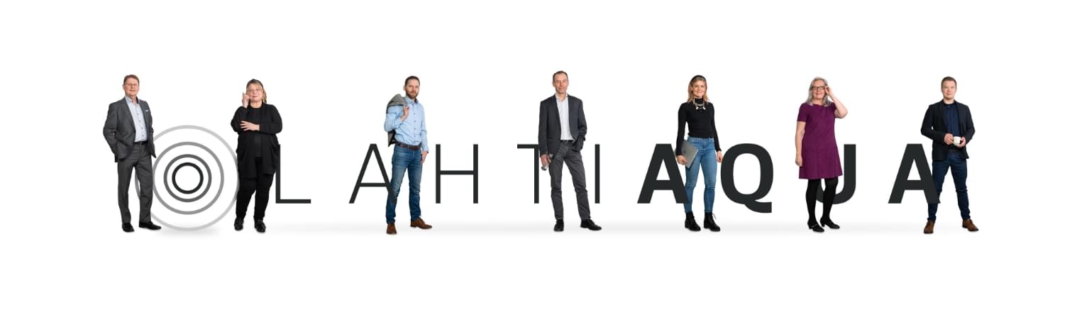 Hannu Mustonen (tytäryhtiö Aqua Palvelu Oy:n tj), Tiina Lakimo (hallintojohtaja), Janne Mäki-Petäjä (tekninen johtaja), Jouni Lillman (Lahti Aqua konsernin tj), Paula Nikula (viestintäpäällikkö), Soile Toivonen (asiakkuusjohtaja), Niko Wassholm (tytäryhtiö Labio Oy:n tj)